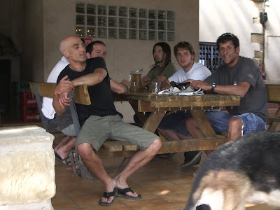 El 9 de Agosto nos juntamos en Murillo de Gállego, Juan Carlos, Javi y Alfonso de Soria que desde aquí les mando un fuerte abrazo "AUPA", José y Chuchi de Valladolid compis de aventuras y yo de Léon para darnos un buen desayuno a base de tortilla y cerveza, y también de paso a bajar el río.